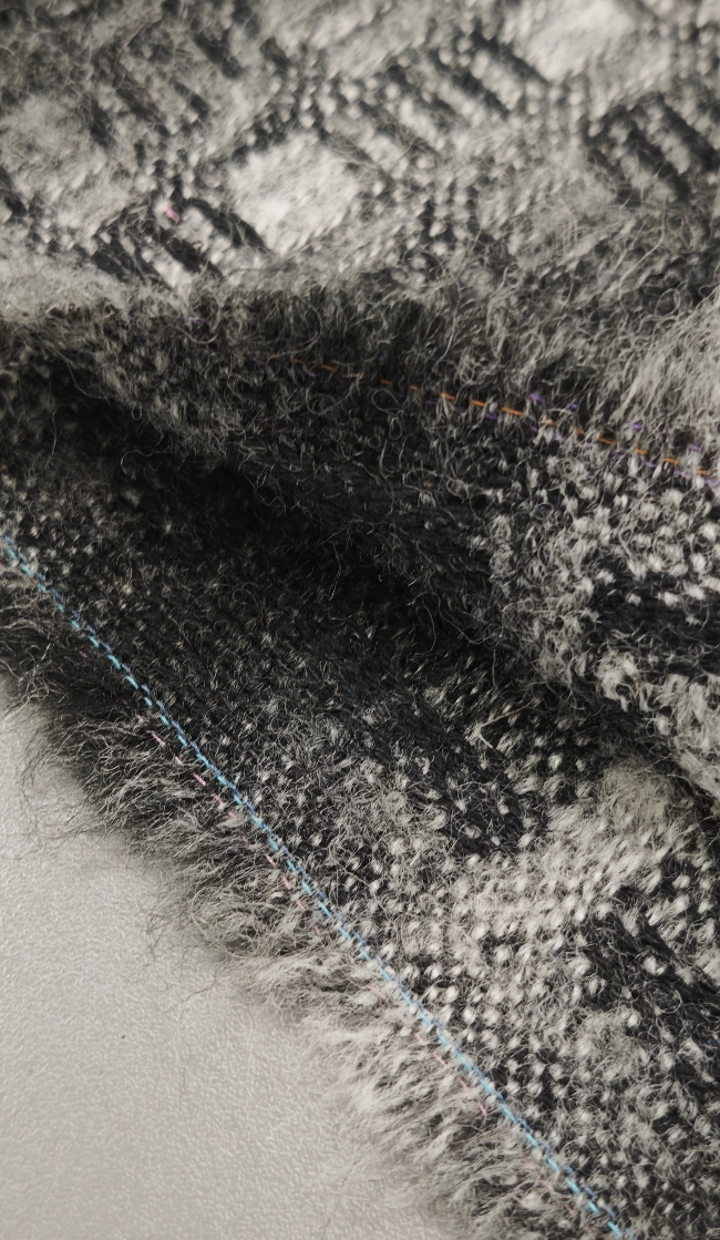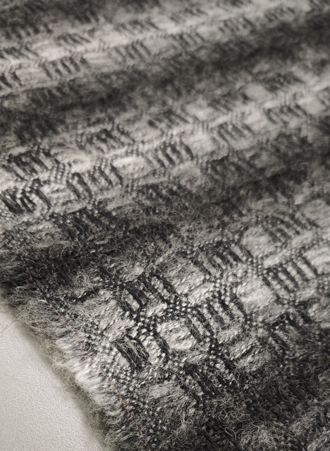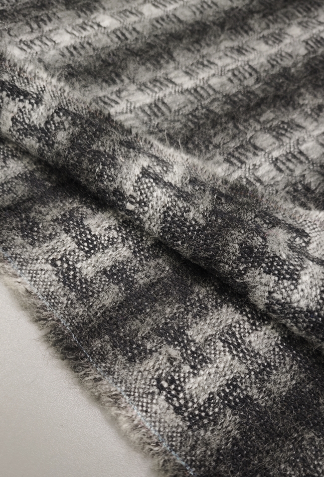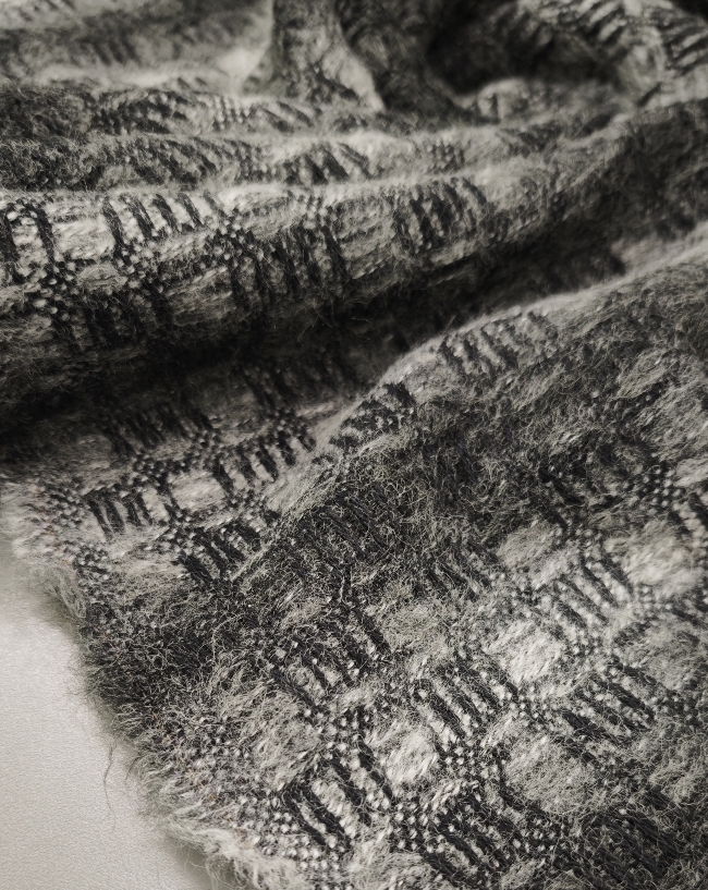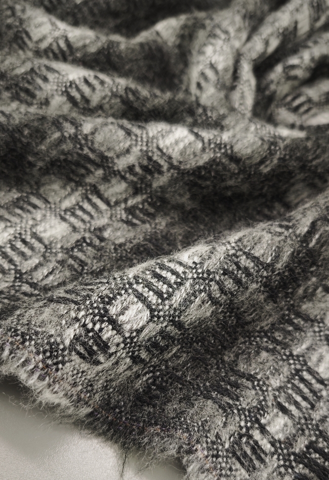 Dieser hochwertige Wollstrickstoff vereint Wärme, Komfort und stilvolles Design. Das schwarz-graue geometrische Muster sorgt für einen modernen Look, der perfekt zu herbstlichen und winterlichen Outfits passt.