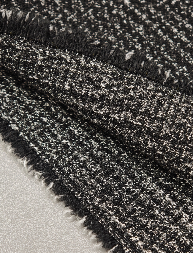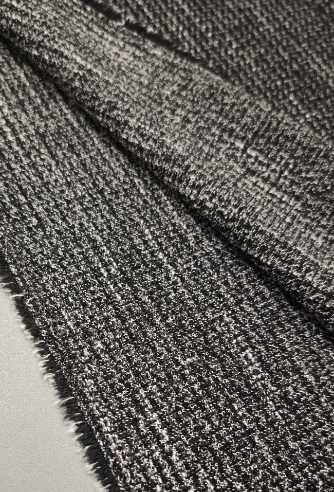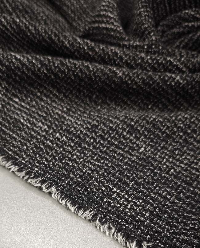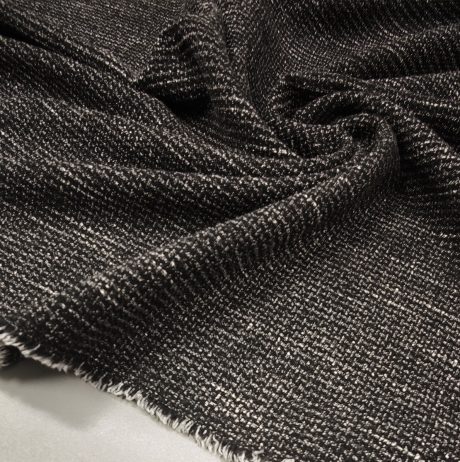 Dieser edle Stoff verbindet zeitlose Eleganz mit italienischem Chic. Die feine schwarz-graue Melierung sorgt für einen dezenten, hochwertigen Look – perfekt für Kostüme, Blazer, Röcke oder elegante Hosen.