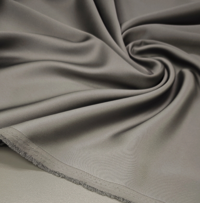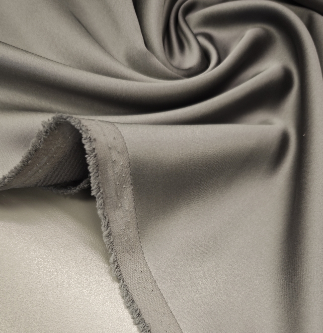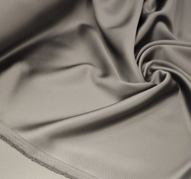 Ein edler, schwerer Satin mit sanftem Glanz und wunderschön fließendem Fall. Die sanftgraue Farbe wirkt ruhig, modern und harmonisch – perfekt für festliche Kleider, elegante Röcke, Blusen oder hochwertige Dekorationen. Durch den leichten Elastananteil bleibt der Stoff formstabil und angenehm dehnbar, was ihn ideal für körpernahe Schnitte macht.