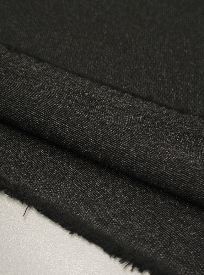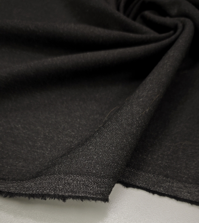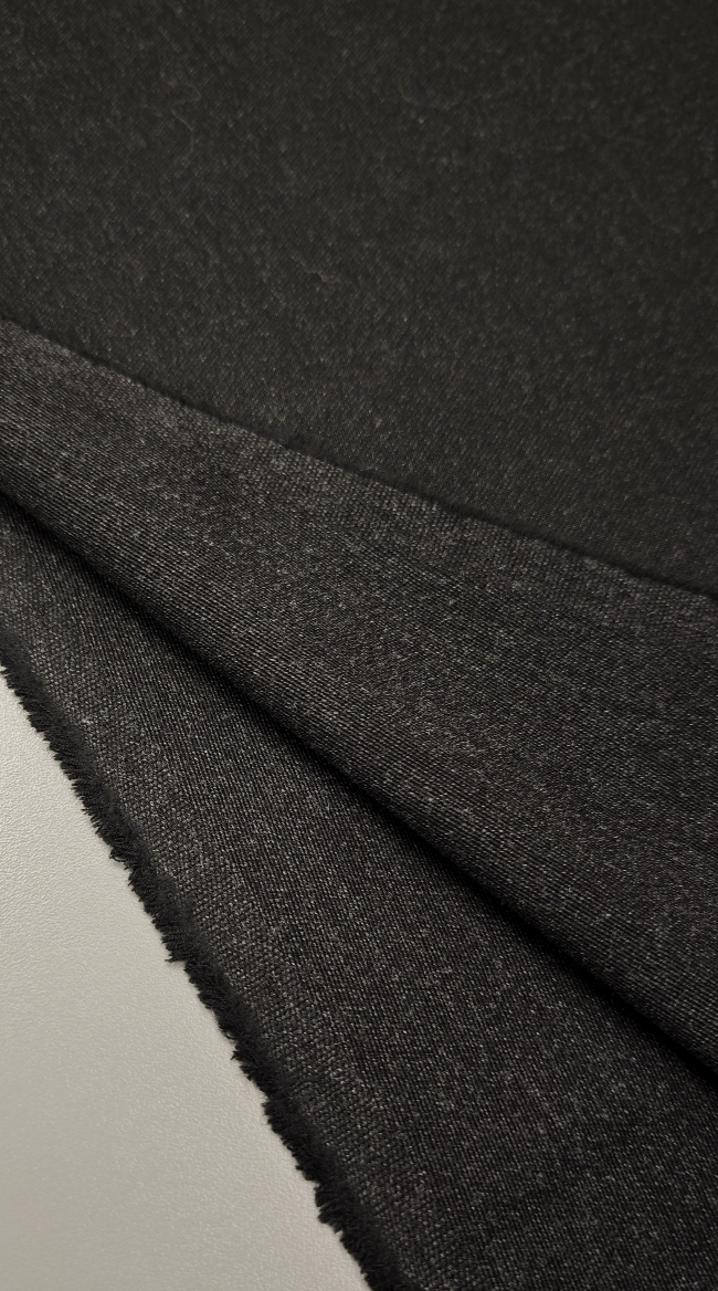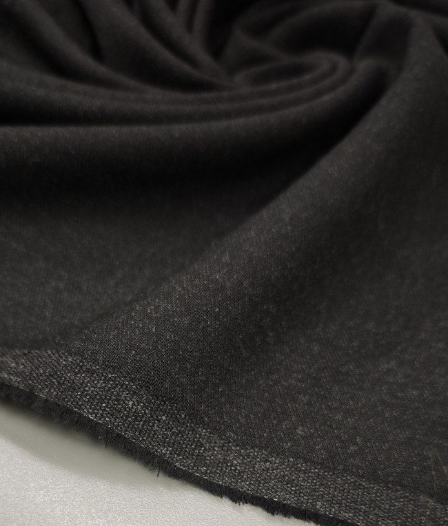 Dunkelgrauer Kostümstoff mit Wollanteil. Strapazierfähiges, angenehm zu tragendes Material für Anzüge, Blazer und Hosen. Klassischer Stoff für Business- und elegante Bekleidung – geeignet für das ganze Jahr.