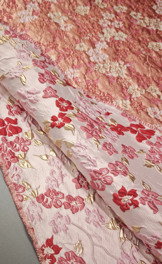 Geeignet für Bekleidung wie elegante Kleider, Röcke, Sakkos, Blazer und modische Details. Der Jacquard überzeugt durch einen klar ausgeprägten floralen 3D-Reliefeffekt, leichten Schimmer und eine beidseitig hochwertige Optik.