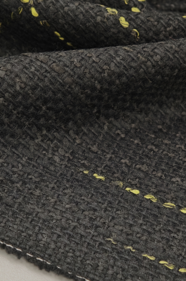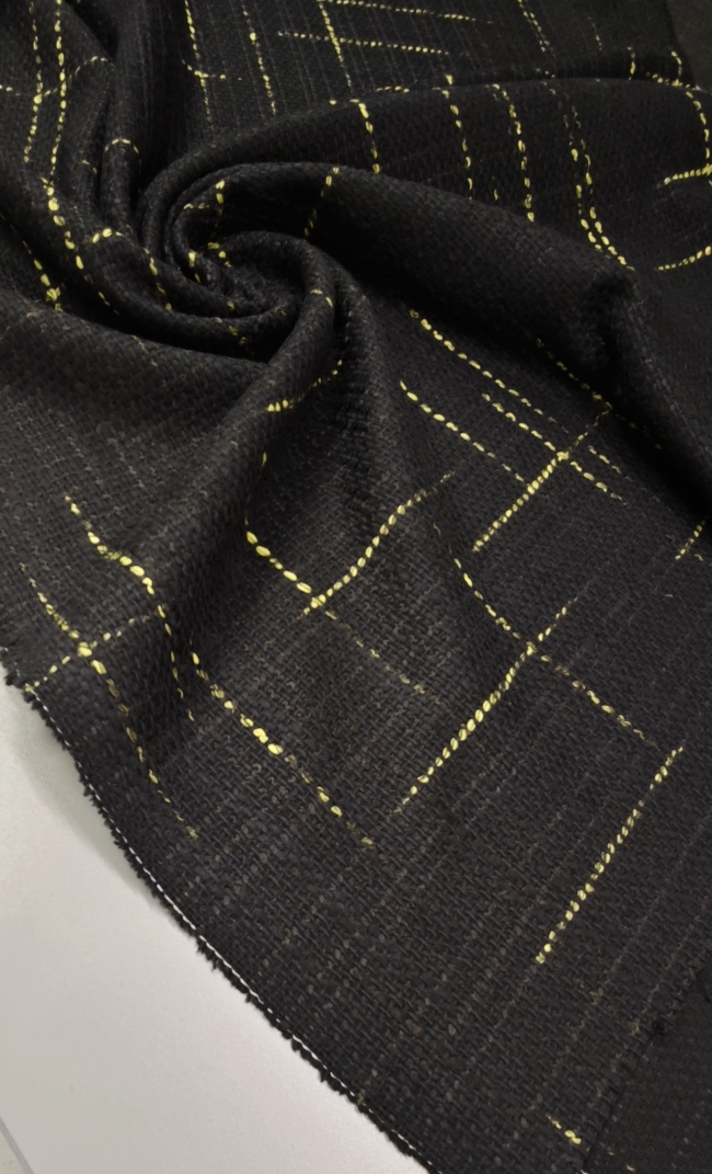 Dieser außergewöhnliche Stoff kombiniert die elegante Basisfarbe Schwarz mit einem subtilen Neon-Effekt, der dem Material einen modernen und auffälligen Charakter verleiht. Mit seiner angenehmen Schwere und Struktur ist er bestens geeignet für trendige Jacken, Mäntel und modische Outdoor-Kreationen.