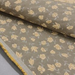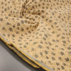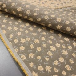 Ein traumhaft schöner Dekostoff mit zartem Blütenmuster in edlem gold-beige – nostalgisch, charmant und beidseitig verwendbar. Ideal für Vorhänge, Kissenbezüge, Tagesdecken oder das stilvolle Neubeziehen von Stühlen und Bänken. Robuste Qualität und herrliches Design für ein wohnliches Ambiente mit einem Hauch Vintage-Flair.