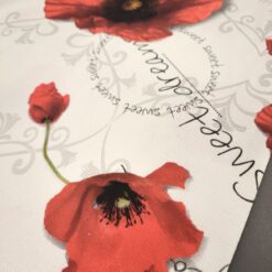 🌺 Mohnblüten mit zarten Botschaften – edler Dekostoff für ein romantisches Wohngefühl