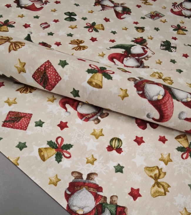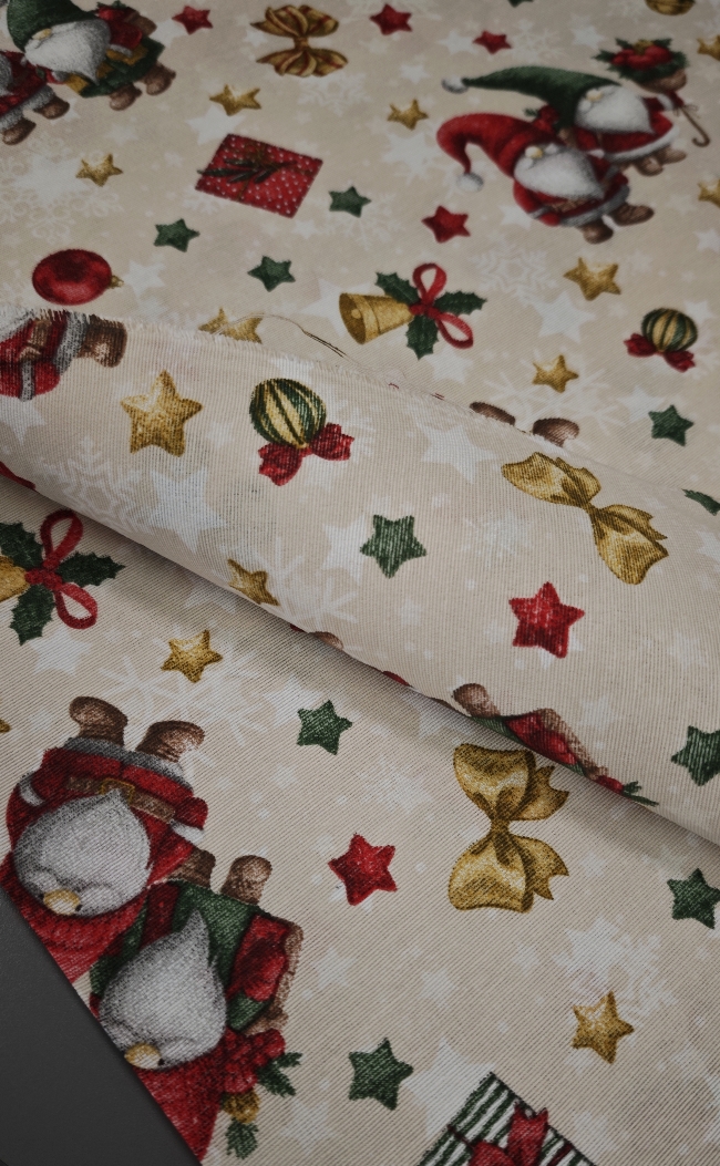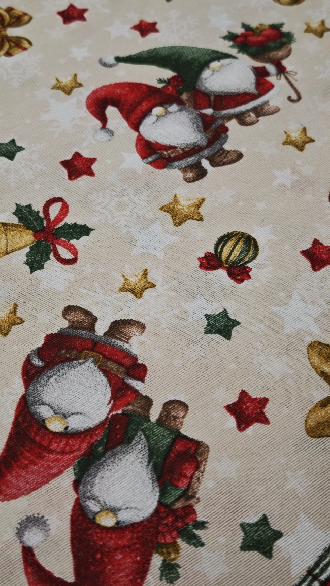 Bringen Sie festliche Stimmung in Ihr Zuhause mit diesem bezaubernden Dekostoff voller fröhlicher Weihnachtswichtel! Der Stoff ist weich, pflegeleicht und perfekt geeignet für Tischdecken, Vorhänge, Kissenbezüge oder andere kreative Deko-Ideen in der Adventszeit.