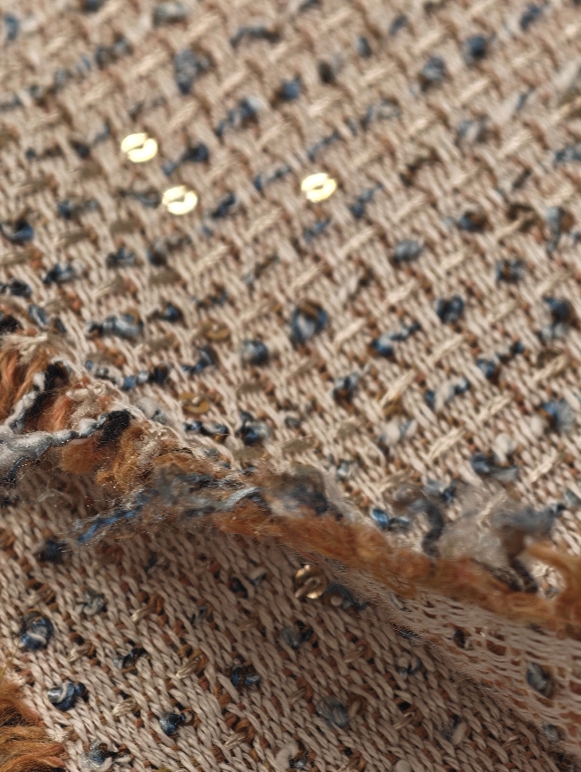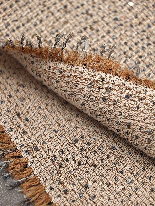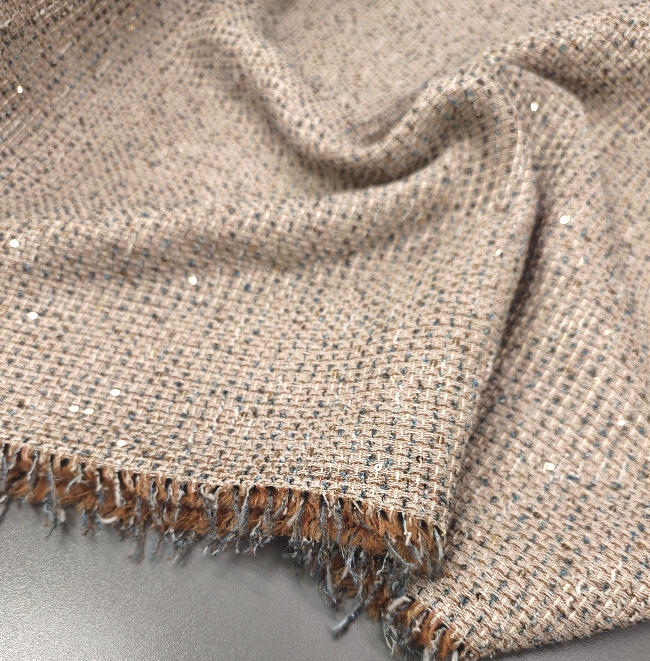 Ein modischer Bouclé-Stoff für stilvolle Kleidung mit elegantem Glanz.
