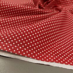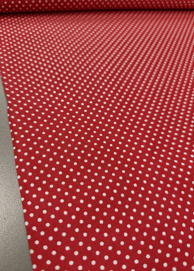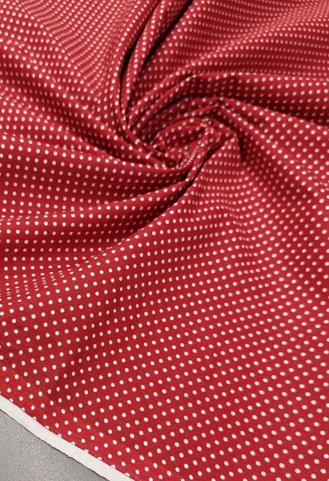 Leichter Baumwoll Popeline in Rot-Weiß mit klassischen Punkten. Glatt, angenehm auf der Haut und einfach zu nähen. Ideal für Kleider, Blusen, Röcke, Kinderbekleidung und Sommermode. Auffälliges Retro-Muster, das sofort wirkt.