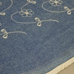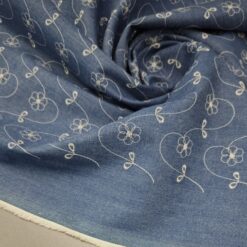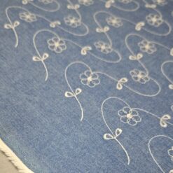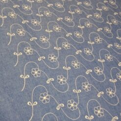 Ein wunderschöner bestickter Jeansstoff in elegantem Blau mit weißen Blumenmotiven – ein echter Hingucker für kreative Schneiderprojekte! Der Stoff hat eine angenehme Festigkeit (310 g/m²) und ist zugleich weich im Griff, wodurch er sich hervorragend für Röcke, Kleider, Jacken, Taschen oder Deko-Elemente eignet.