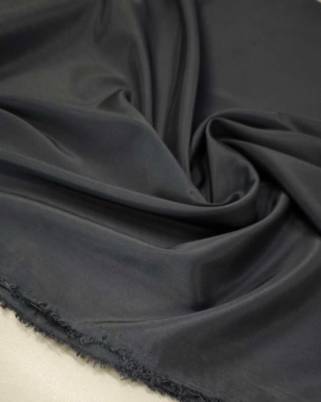 Elastische Futterware in dunkelblauer Farbe mit Graphitton. Glatt, weich im Griff und formstabil mit angenehmer Dehnung. Geeignet als Futter für Jacken, Mäntel, Sakkos, Röcke und Kleider.