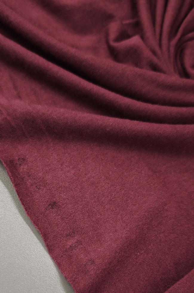 Dieser bordeauxrote Viskose-Jersey überzeugt mit seiner angenehm weichen Haptik und hervorragenden Elastizität. Der Stoff fällt fließend, ist atmungsaktiv und sorgt für ein besonders komfortables Tragegefühl. Ideal für T-Shirts, Kleider, Röcke, Tops und bequeme Freizeitmode.