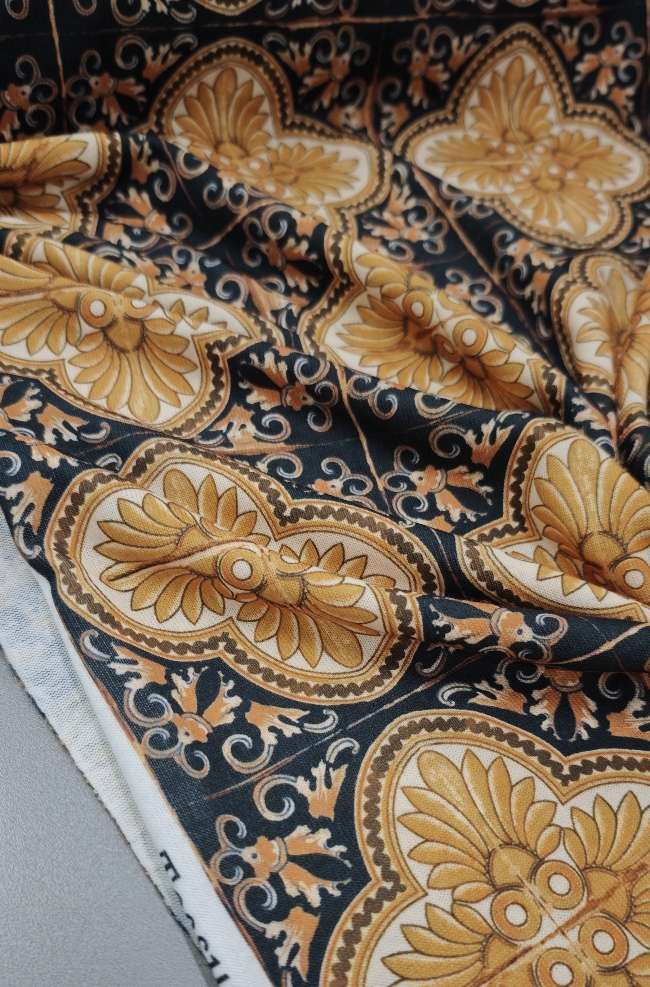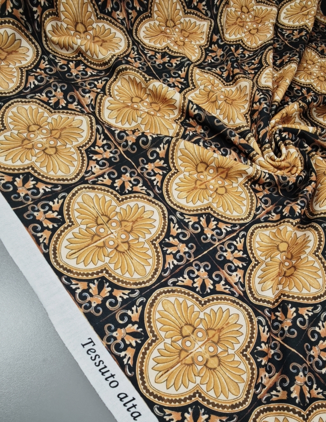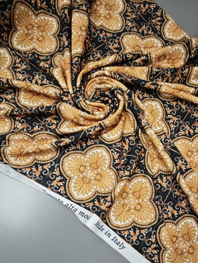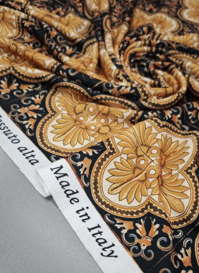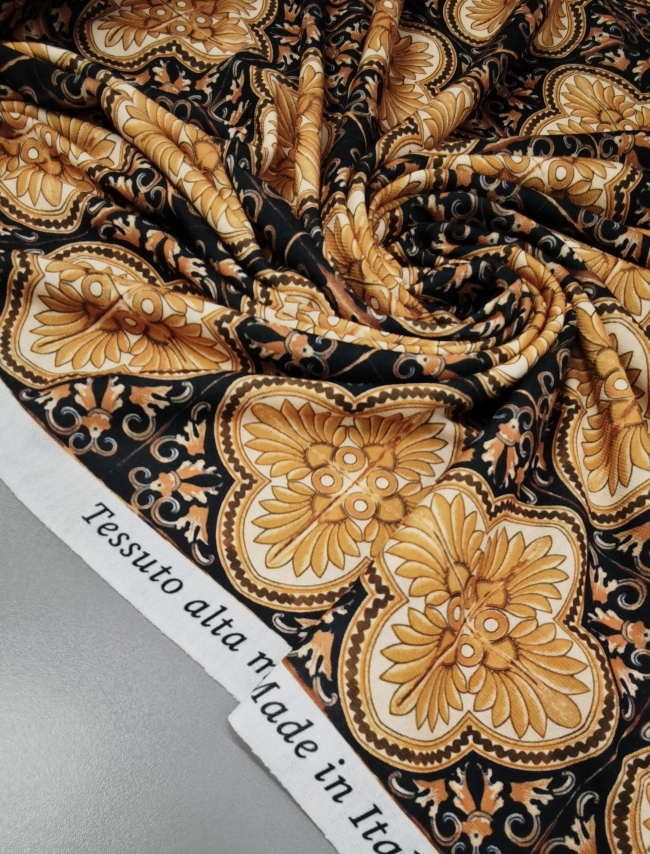 🎁 Jersey gold-schwarz Barock-Muster – Modischer Hit, super Preis LETZTES STÜCK 3 m / 19,50 €