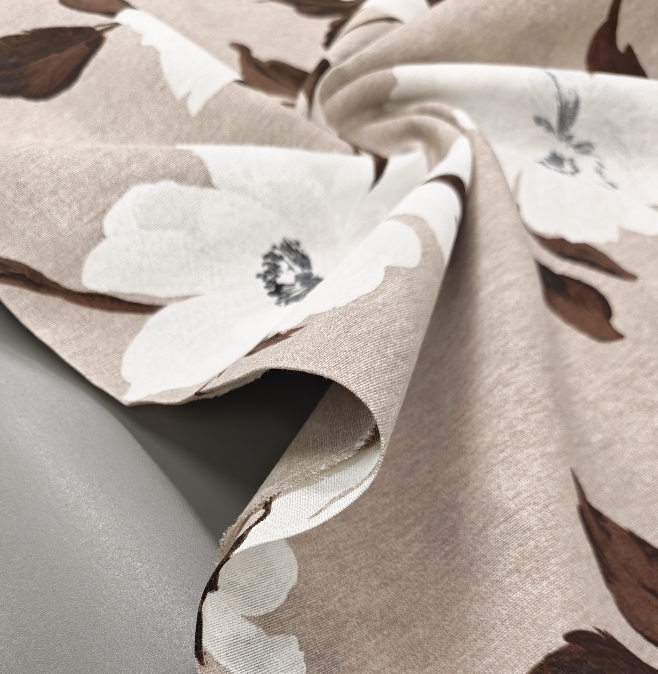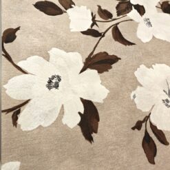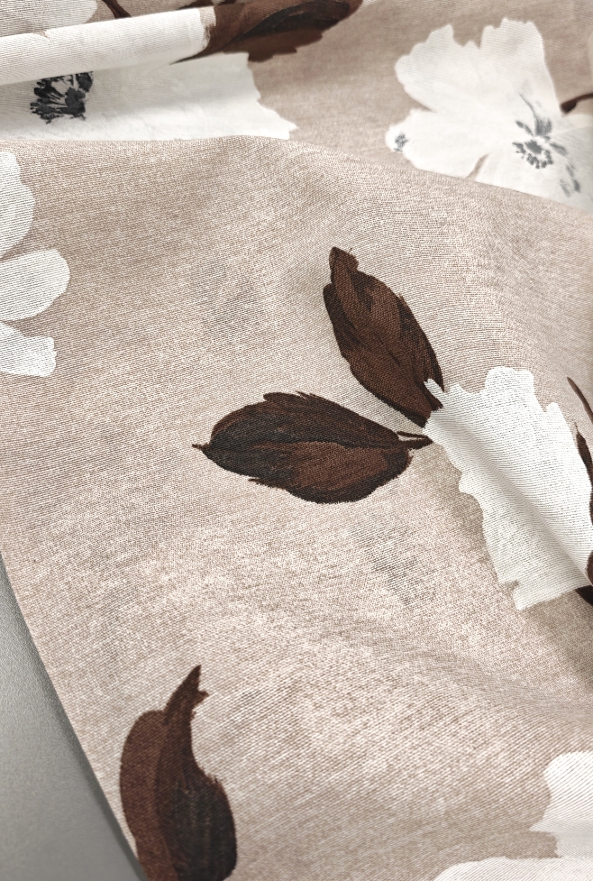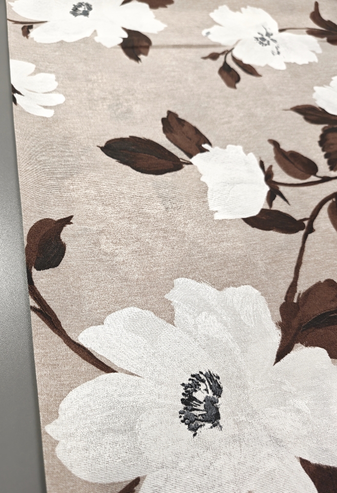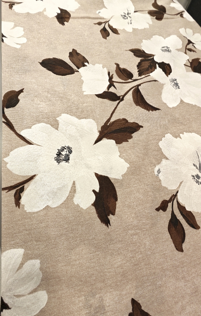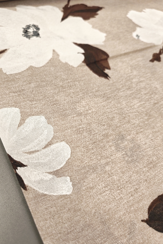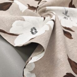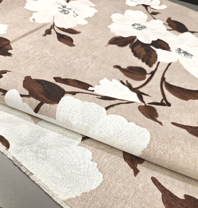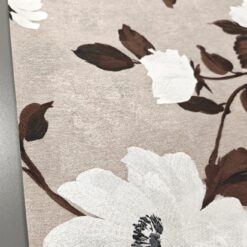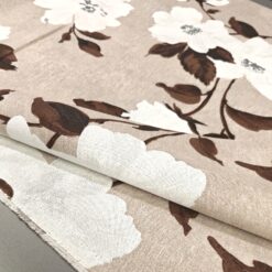 Dekostoff Natur – große Blumen in Weiß und Braun (280 cm breit)