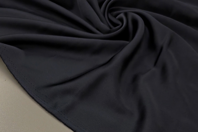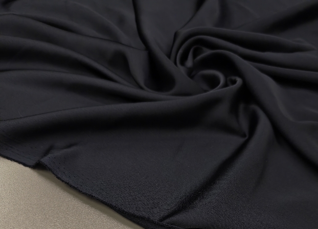 Leichter, fein glänzender Satin in elegantem Dunkelblau. Der Stoff fällt weich und wirkt glatt und hochwertig.