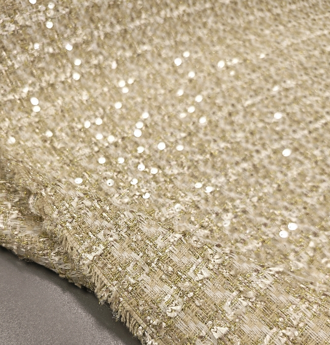 Gold-Grüner Bouclé Stoff mit Pailletten – edler Kostümstoff