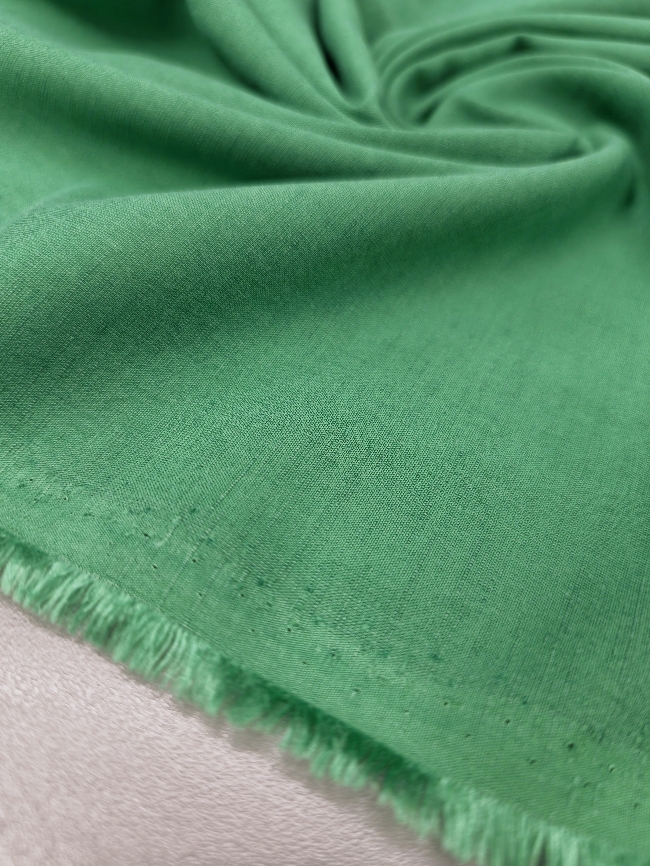 Leichter Baumwoll-Leinen Stoff in frischem Grasgrün. Luftig, angenehm zu tragen und perfekt für warme Tage. Ideal für Sommerkleider, Blusen, Röcke und leichte Hosen. Natürlicher Griff mit leicht strukturierter Oberfläche – typisch Baumwoll-Leinen. Gute Wahl für bequeme Alltagskleidung im Sommer.