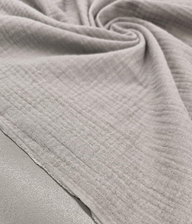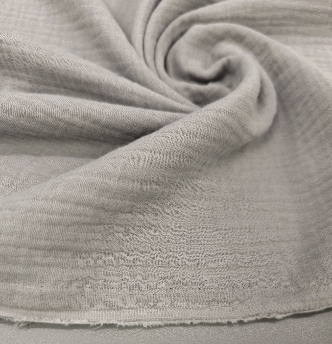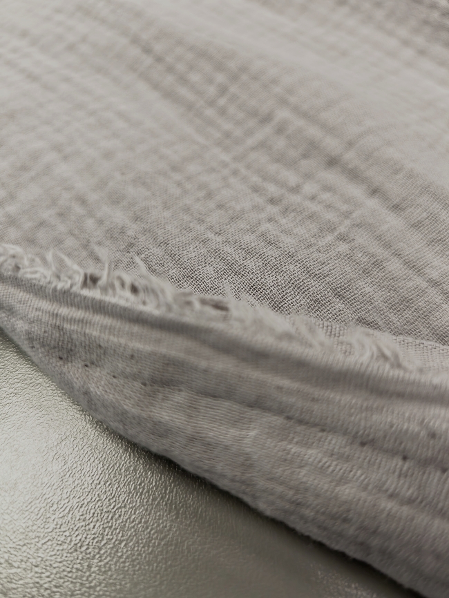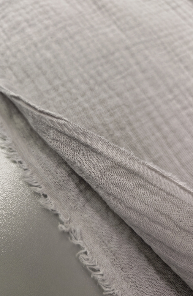 Doppellagiger Tetra-Stoff in modernem Grau. Weich, luftig und angenehm auf der Haut. Durch die zwei Lagen ist der Stoff voluminöser und weniger durchsichtig, bleibt aber leicht und atmungsaktiv.