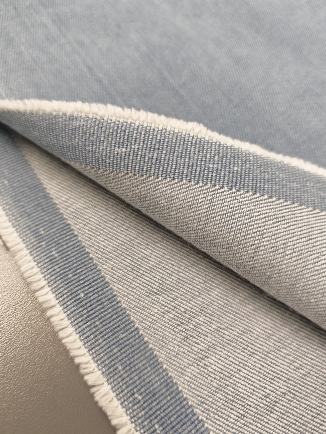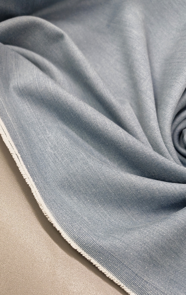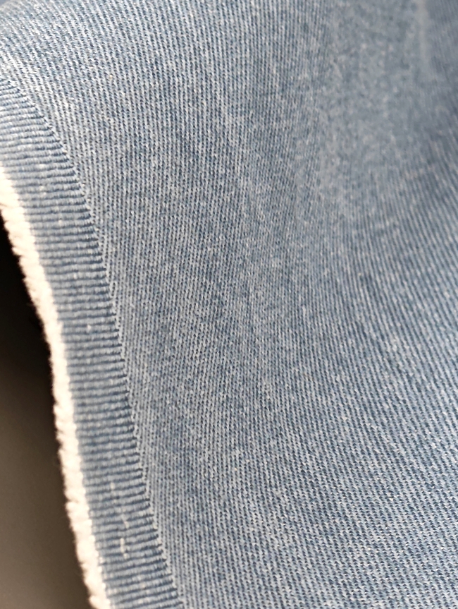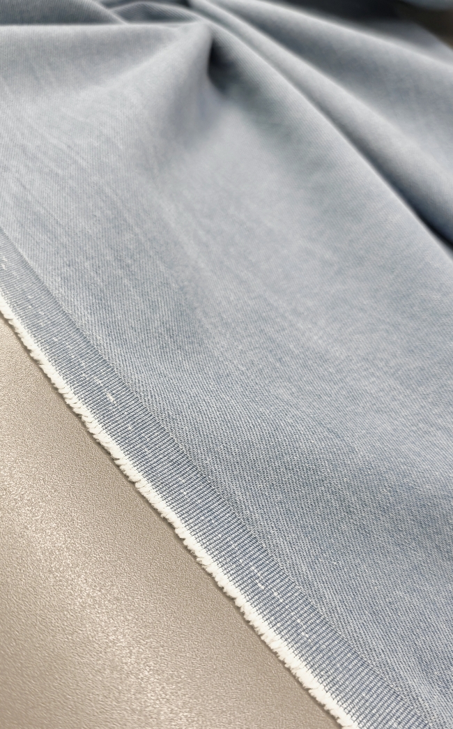 Gewaschener Jeansstoff in hellblauer Farbe mit leicht ausgewaschenem Effekt. Fester Griff, dabei durch Elasthan angenehm beweglich. Typischer Denim-Charakter, ideal für Jeans, Jacken und Röcke mit modernem, alltagstauglichem Look.