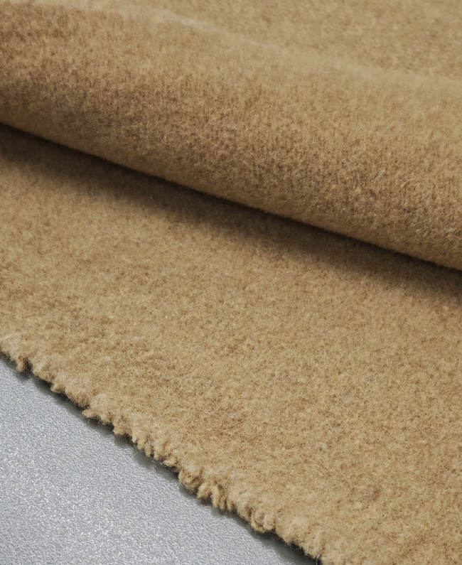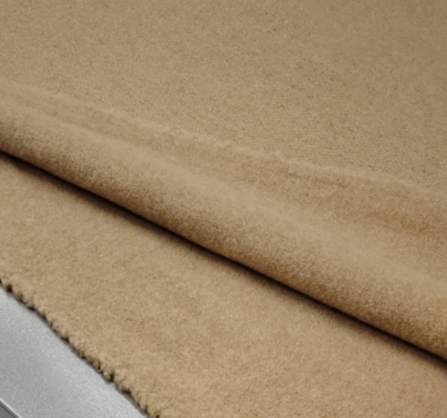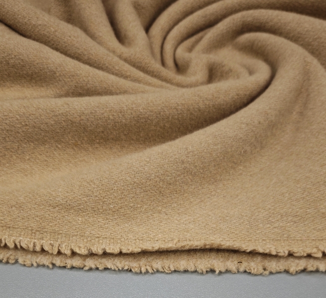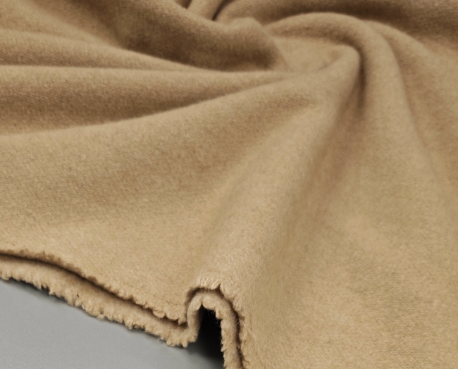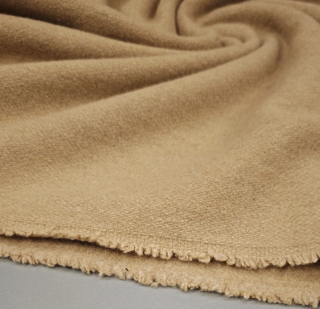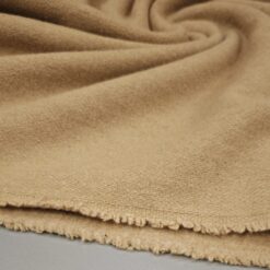 Dieser hochwertige Wollstoff in edlem Camel-Ton ist mit feinem Kaschmir veredelt und bietet ein besonders weiches, warmes und luxuriöses Tragegefühl. Das Material fällt schön und eignet sich perfekt für Mäntel, Jacken, Westen oder elegante Blazer.
