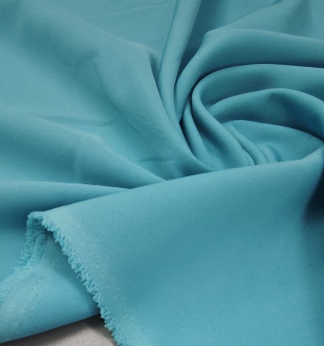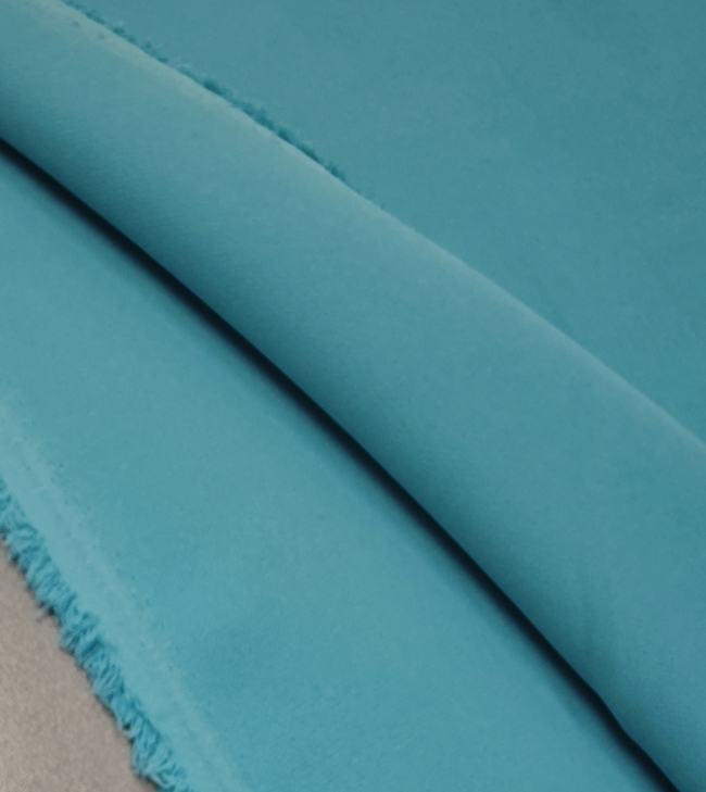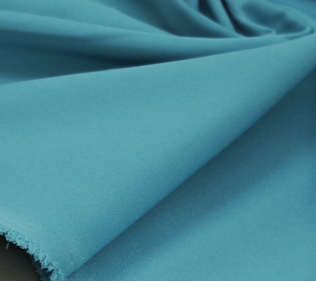 Elastischer Kostümstoff in klarer, türkisfarbener Nuance mit glatter Oberfläche und leicht seidigem Griff. Der Stoff fällt sauber, knittert wenig und trägt sich angenehm. Durch die Elastizität gut geeignet für figurbetonte Schnitte und bewegungsfreundliche Modelle.