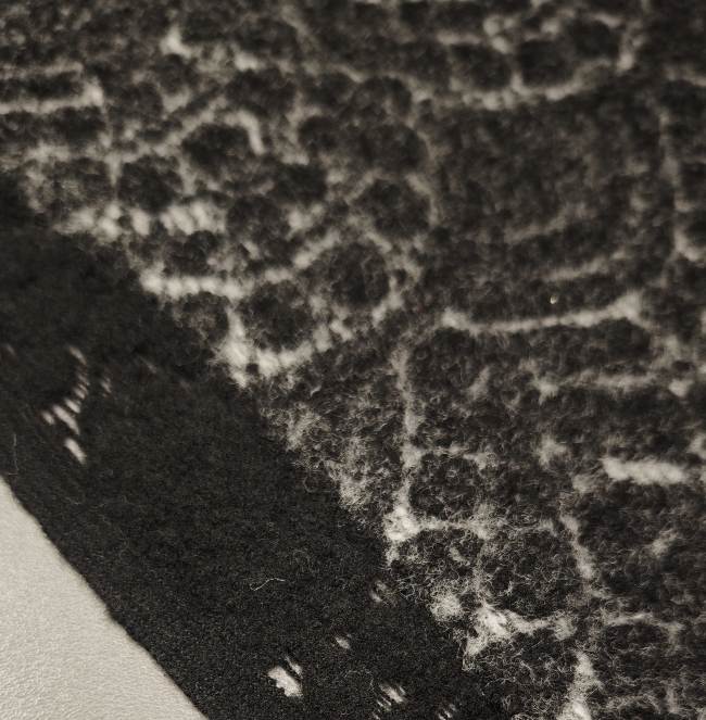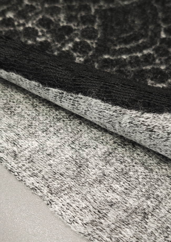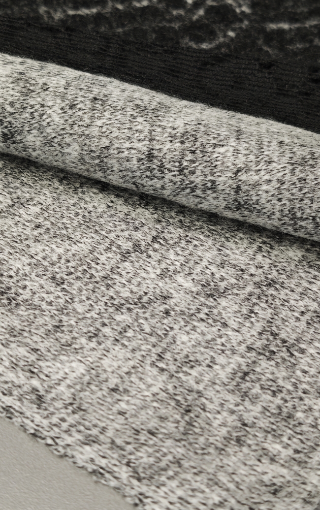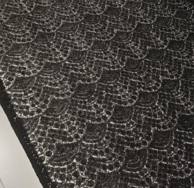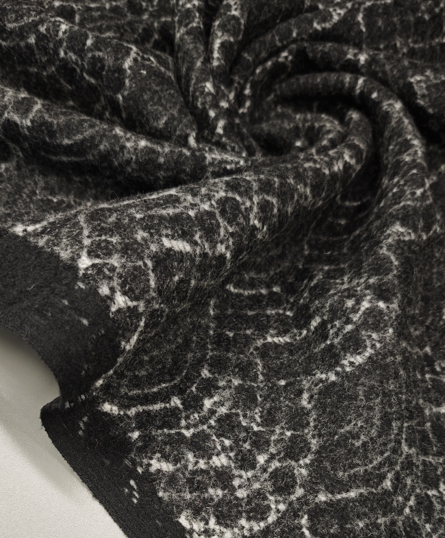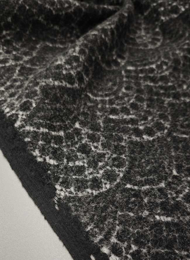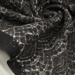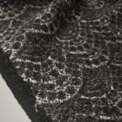 in eleganter Mantelstrickstoff mit grau-schwarzem Ornamentmuster (350 g/m²) – perfekt für stilvolle Herbst- und Wintermode. Der Stoff ist angenehm weich, warm und formstabil, ideal für Mäntel, Jacken, Capes oder Ponchos. Durch das feine Ornamentmuster wirkt er edel und gleichzeitig modern – ein echter Blickfang für exklusive Eigenkreationen.