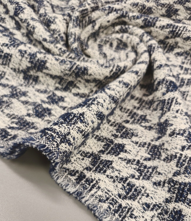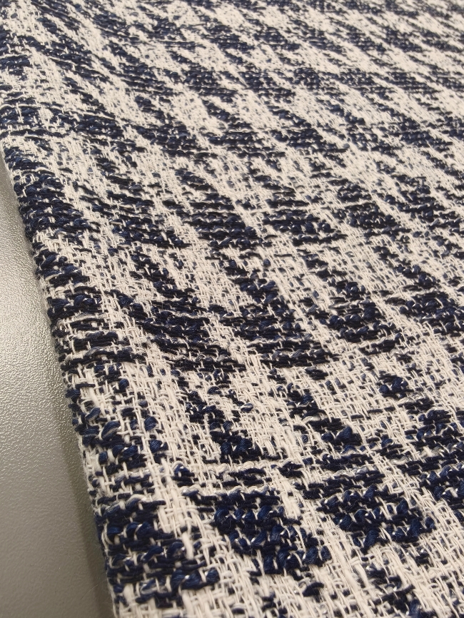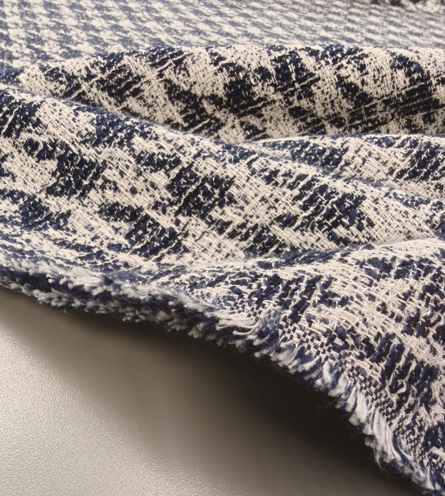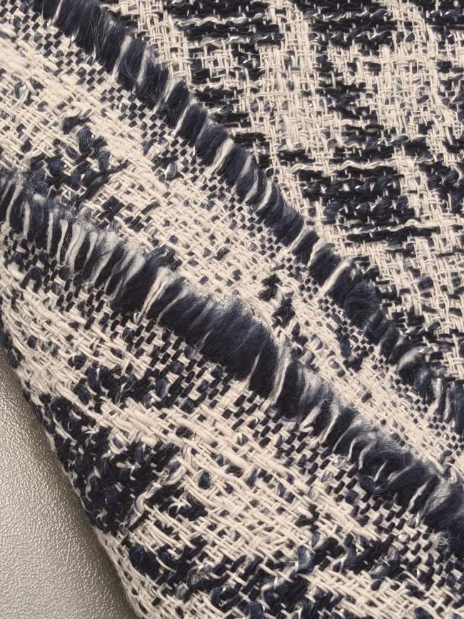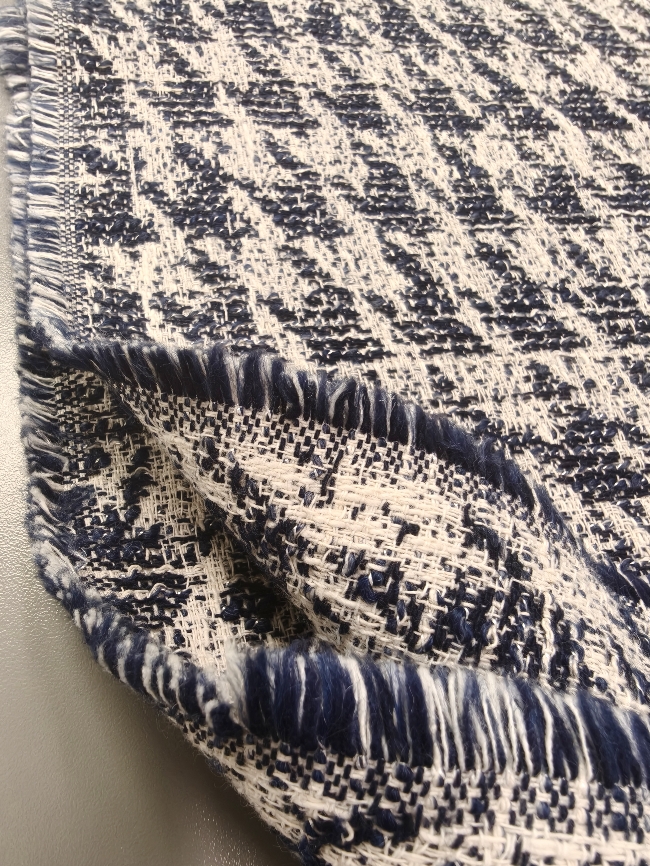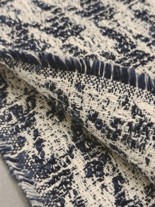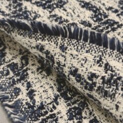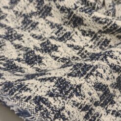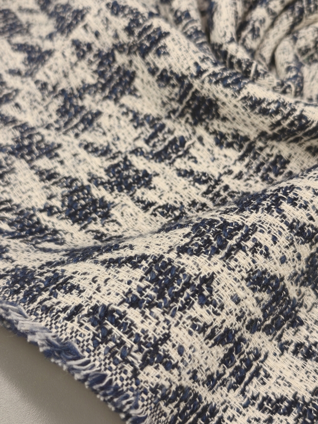 Eleganter Bouclé in Dunkelblau und Natur – mit seiner strukturierten Oberfläche und der stilvollen Farbkombination eignet sich dieser Stoff perfekt für moderne Blazer, Kostüme oder Übergangsjacken. Die Mischung aus Baumwolle und Polyester sorgt für angenehmen Tragekomfort und eine schöne Formbeständigkeit.