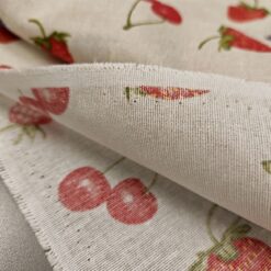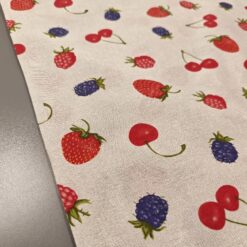 Fröhlicher Dekorstoff auf naturfarbener Basis mit lebendigem Sommerfrüchte-Motiv. Erdbeeren, Kirschen und Brombeeren bringen Wärme und Farbe in jeden Raum – ideal für Tischdecken, Vorhänge, Polster, Kissen oder kreative Deko-Projekte. Der Stoff wirkt freundlich, ländlich und passt perfekt zu Küchen, Esszimmern, Ferienwohnungen oder Gartendekoration. Angenehm zu verarbeiten, formstabil und alltagstauglich.