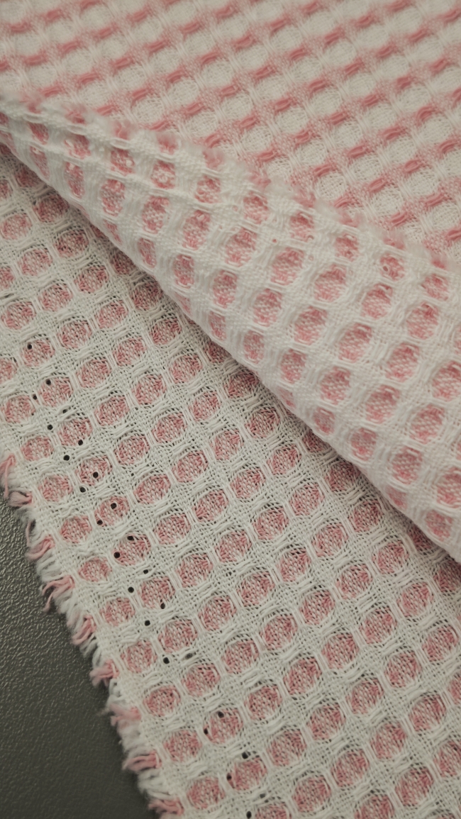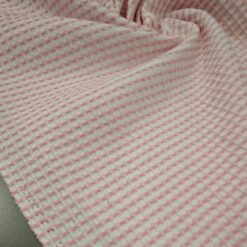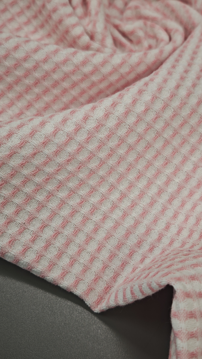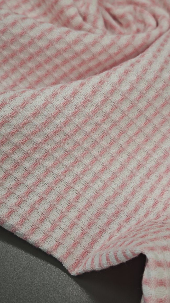 Dieser naturfarbene Baumwoll-Piqué mit zartrosa Wabenstruktur besticht durch seine weiche Haptik und natürliche Ausstrahlung. Der Stoff ist atmungsaktiv, hautfreundlich und ideal für sommerliche Kleidung, Babyartikel, Heimtextilien oder leichte Dekoideen.