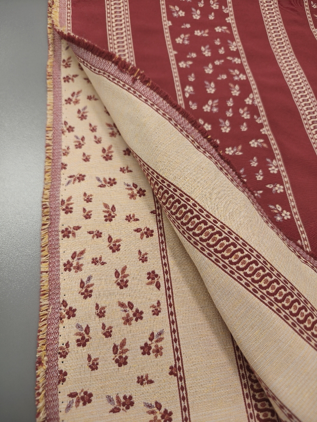 Tauchen Sie Ihr Zuhause in eine behagliche Landhaus-Atmosphäre mit unserem rot-beigen, beidseitig verwendbaren Dekostoff „Rustikale Wärme“. Der hochwertige Jacquard mit einem Gewicht von 350 g/m² und einer großzügigen Breite von 280 cm eignet sich ideal für Vorhänge, Kissenbezüge, Tagesdecken oder textile Wohnaccessoires.