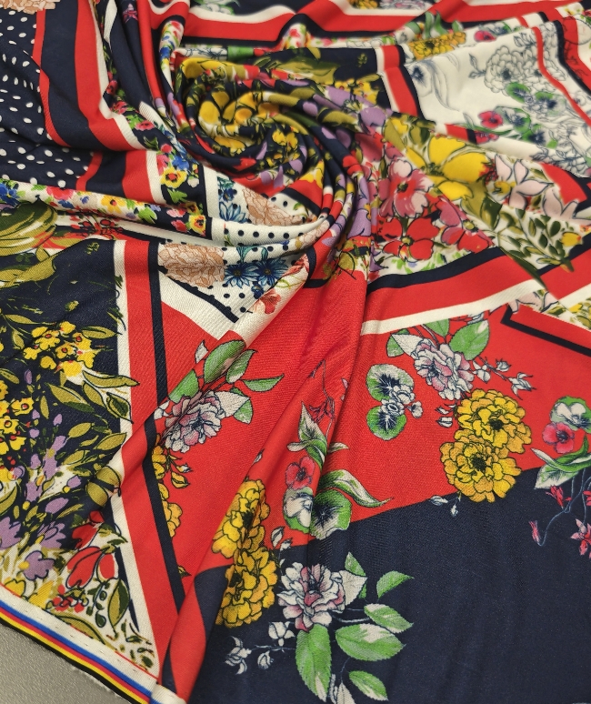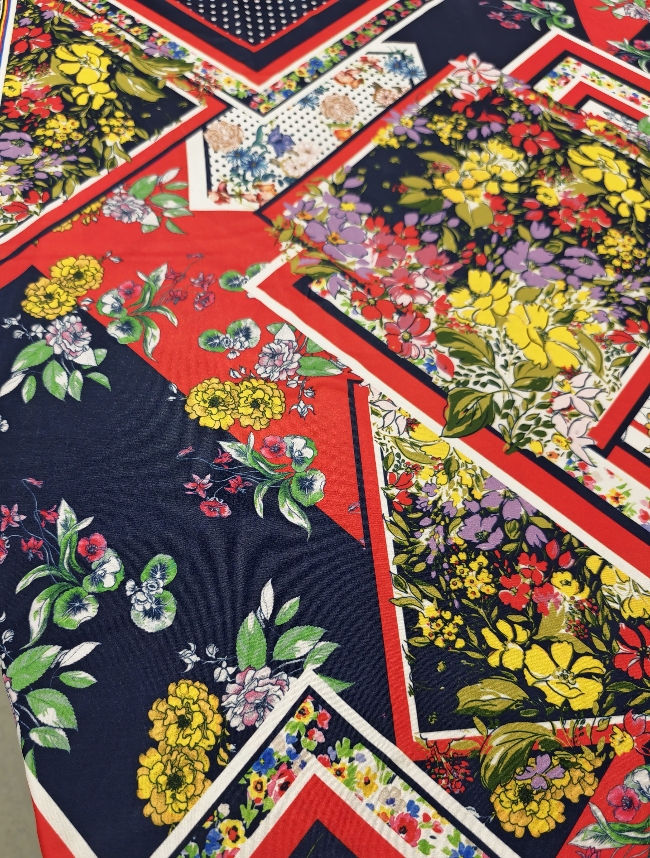 Elastische Lycra in Rot-Blau mit auffälligem Patchwork-Design. Angenehm glatt, dehnbar und formstabil – ideal für körpernahe Schnitte. Sehr gut geeignet für Badebekleidung, Tanz- und Sportbekleidung, Leggings, Tops sowie auffällige Fashion-Teile mit starkem Farbkontrast. Moderne Optik, hoher Tragekomfort und zuverlässige Elastizität für professionelle Ergebnisse.