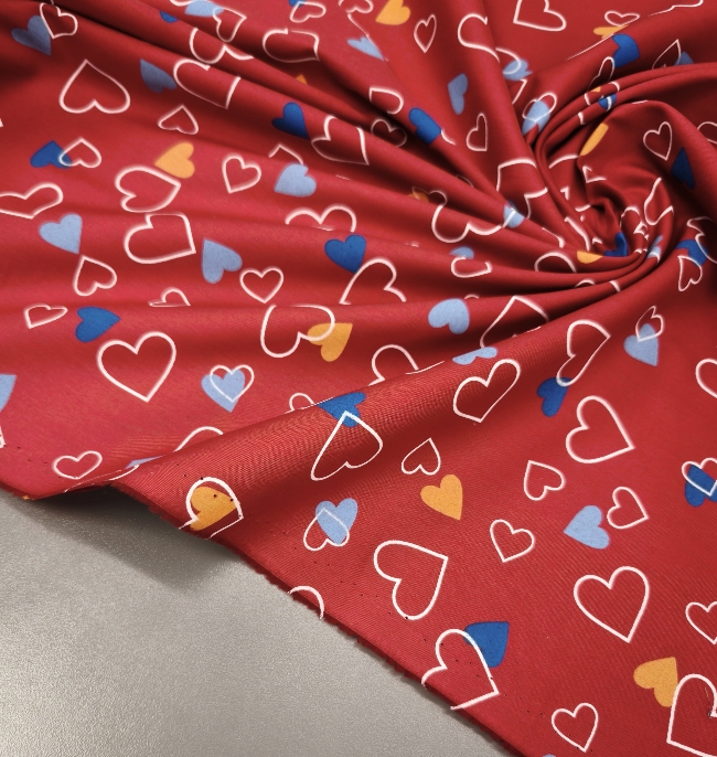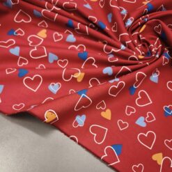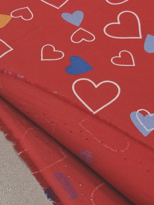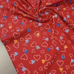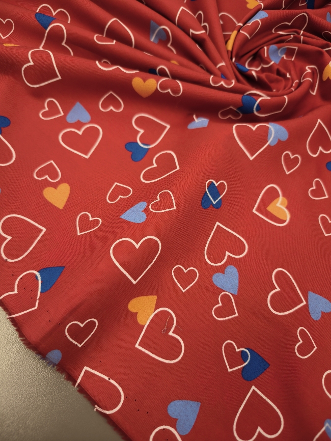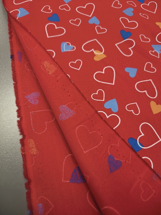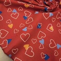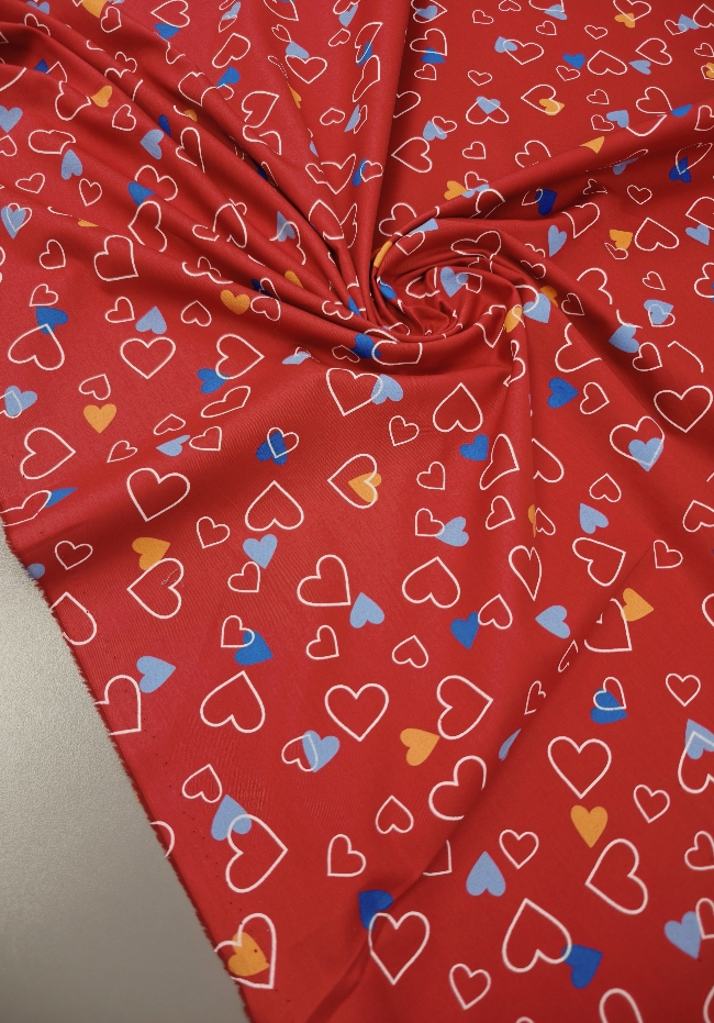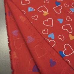 Ein federleichter Baumwollstoff mit entzückendem Herzchenmuster – perfekt für liebevolle Nähideen! Mit seinem Gewicht von nur 120 g/m² eignet er sich ideal für Sommerkleider, luftige Röcke, Kinderbekleidung, Deko oder kleine DIY-Geschenke. Die süßen roten Herzen auf hellem Grund machen jedes Projekt zum Hingucker!