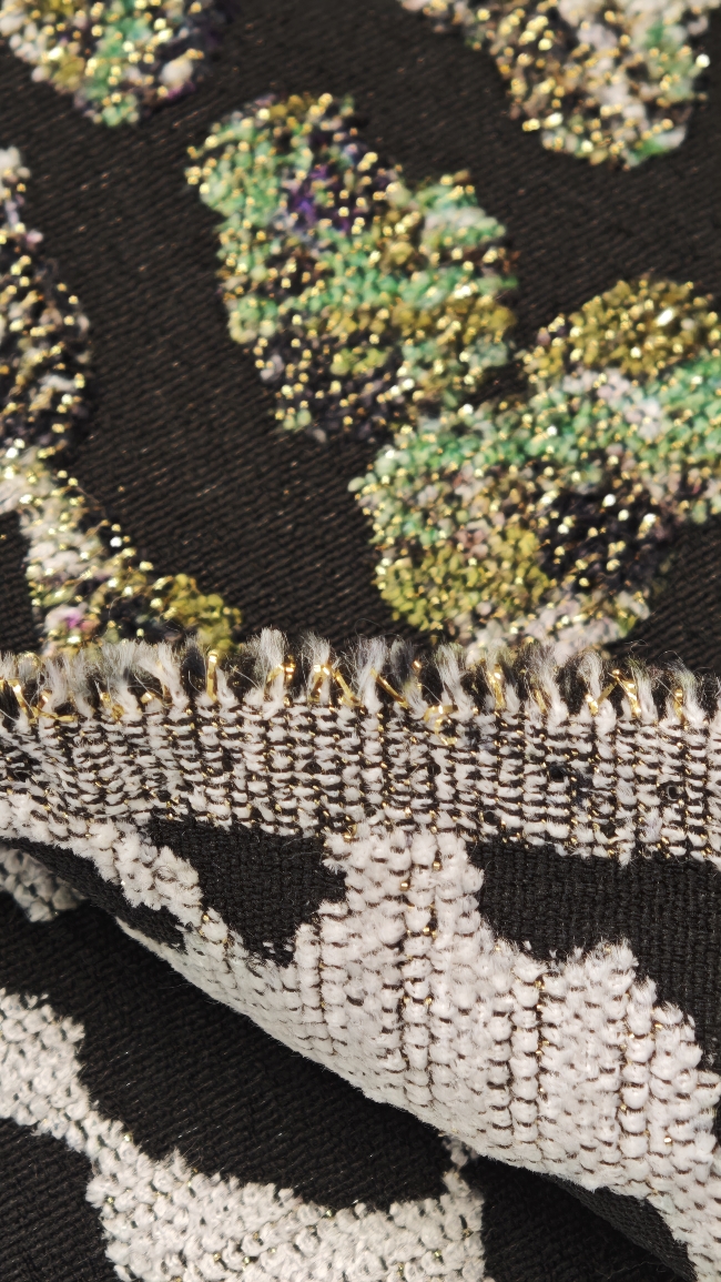 Auch im Interior Design setzt dieser Stoff besondere Akzente – perfekt für Kissen, Vorhänge oder dekorative Elemente, die jedem Raum eine glamouröse Note verleihen.