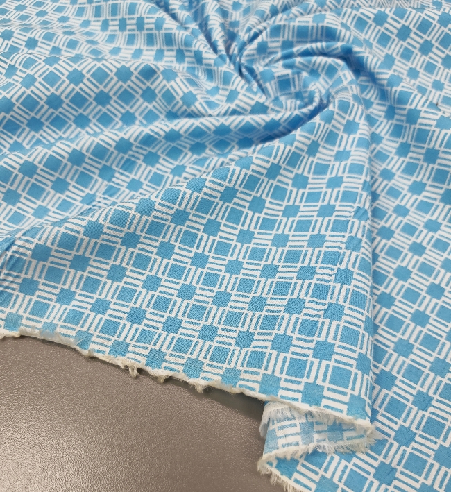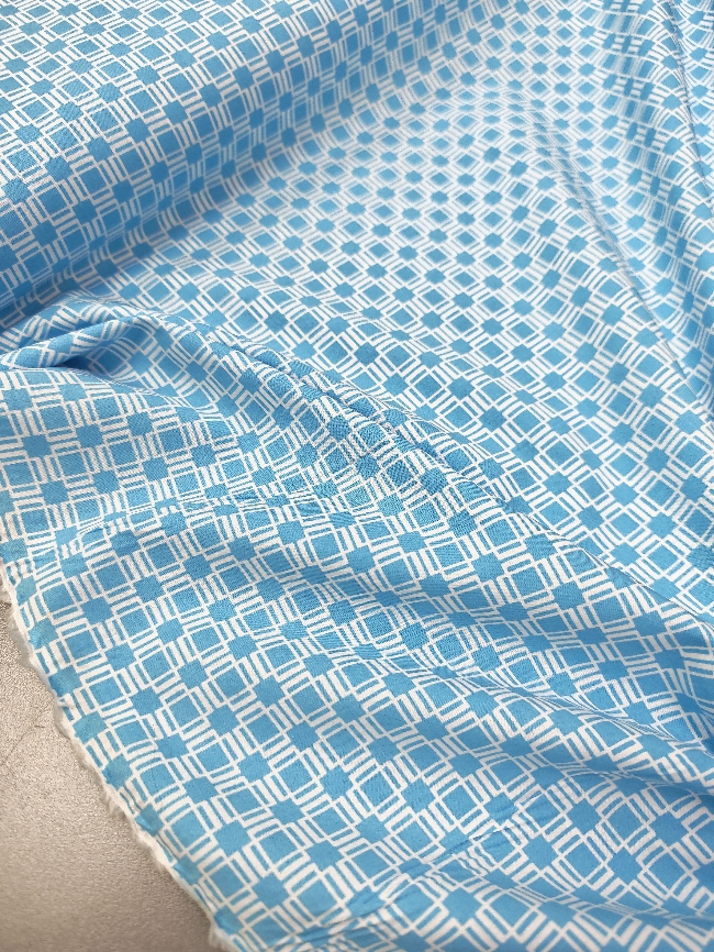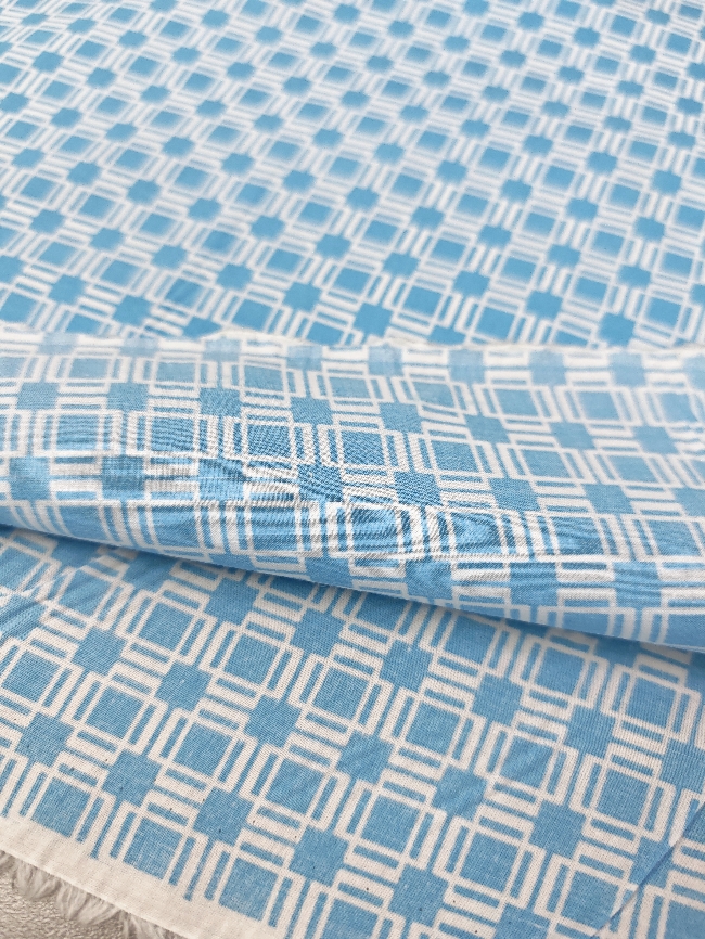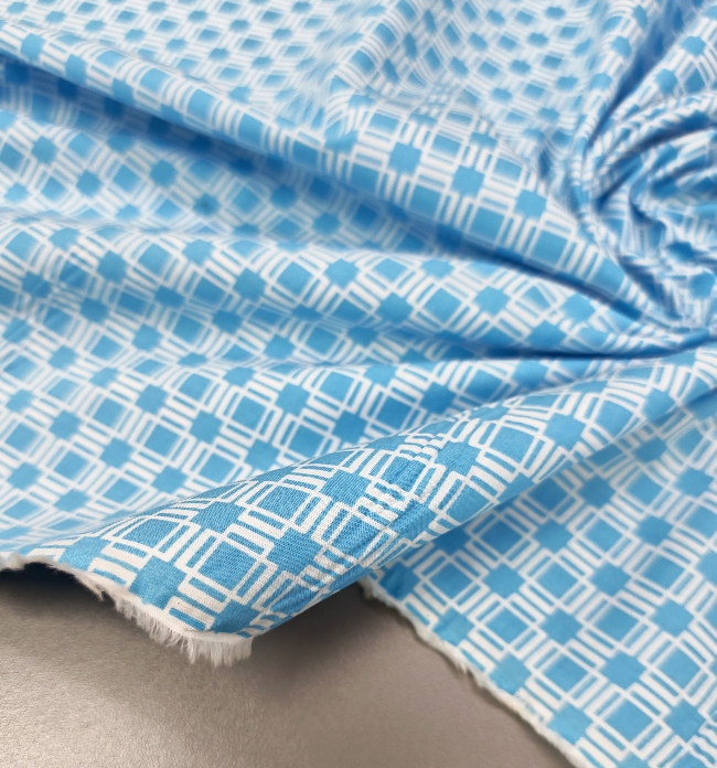 🎁 SUPER PREIS – blau-weißer Baumwollpopeline mit geometrischem Muster