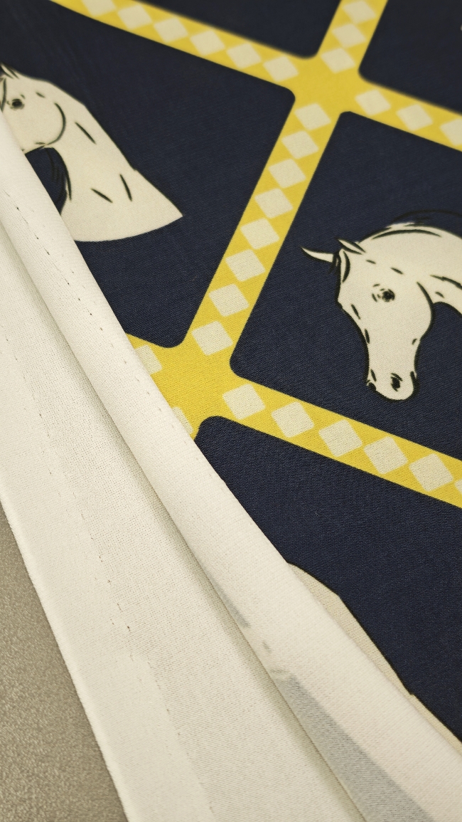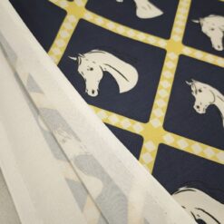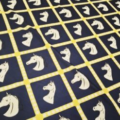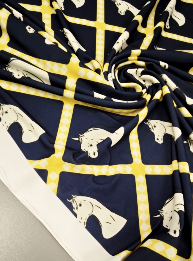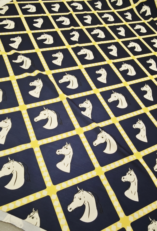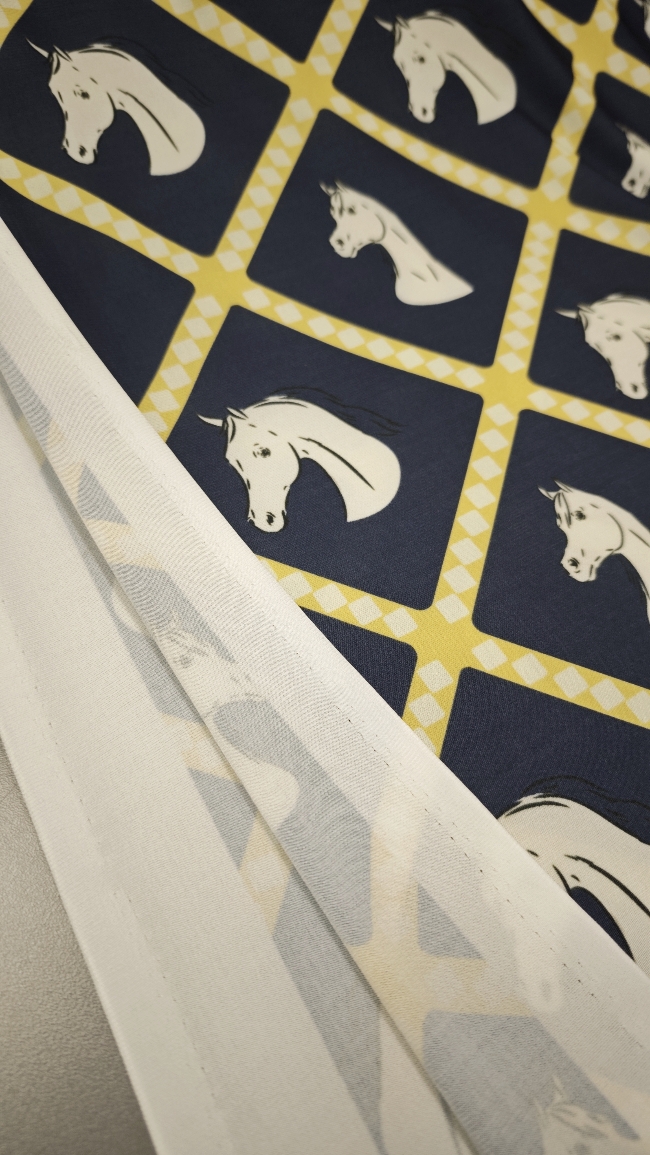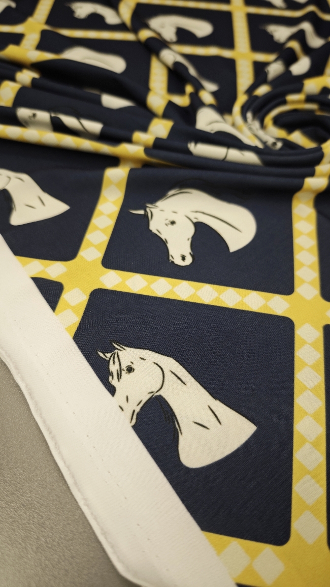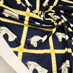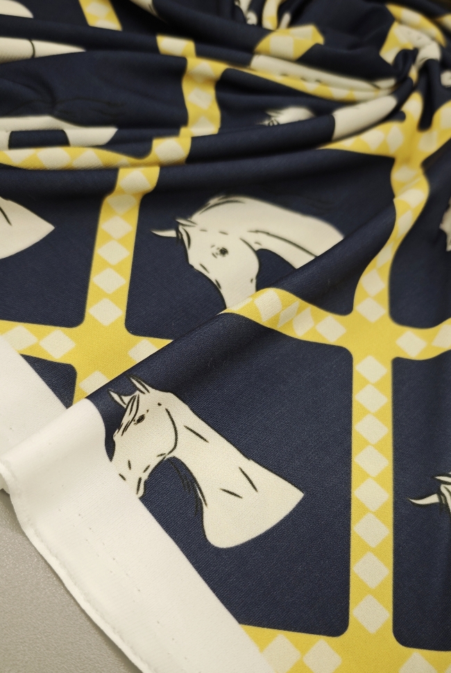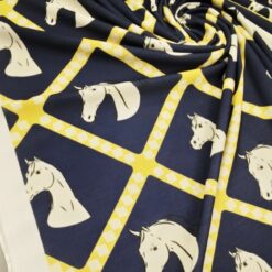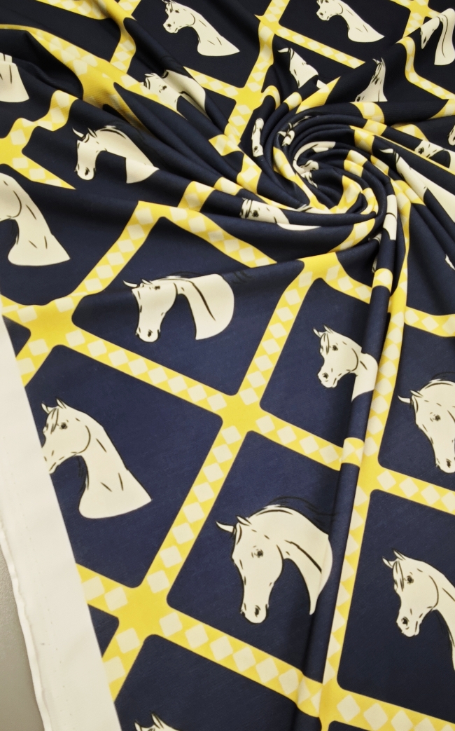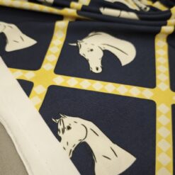 Diese Lycra sticht sofort ins Auge – die dunkelblaue Basis wirkt edel, während das gelbe Pferdemotiv Power, Bewegung und einen modernen Look verleiht.