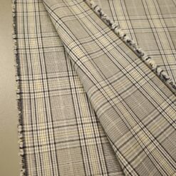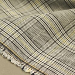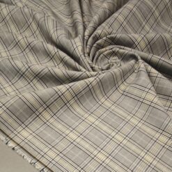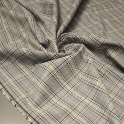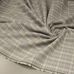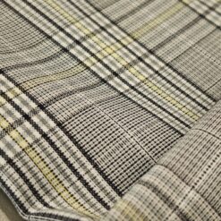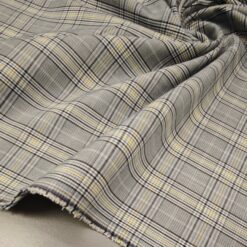 Dieser Stoff vereint klassisches Karo in Hellgrau mit einer feinen gelben Linie, die dem Design Frische und modernen Charme verleiht. Hergestellt aus leichtem Diolen, ist er angenehm, luftig und zugleich formstabil – perfekt für exaktes Schneidern.