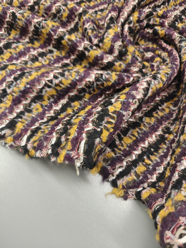 Dieser einzigartige Strickstoff im stilvollen Missoni-Look begeistert mit seiner eleganten Kombination aus Violett und Ocker. Mit seiner beidseitigen Optik und einem Gewicht von 410 g/m² ist er ideal für modische Jacken, Cardigans, Röcke oder kuschelige Herbst- und Winterteile.