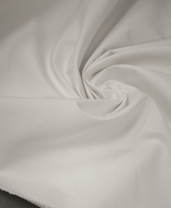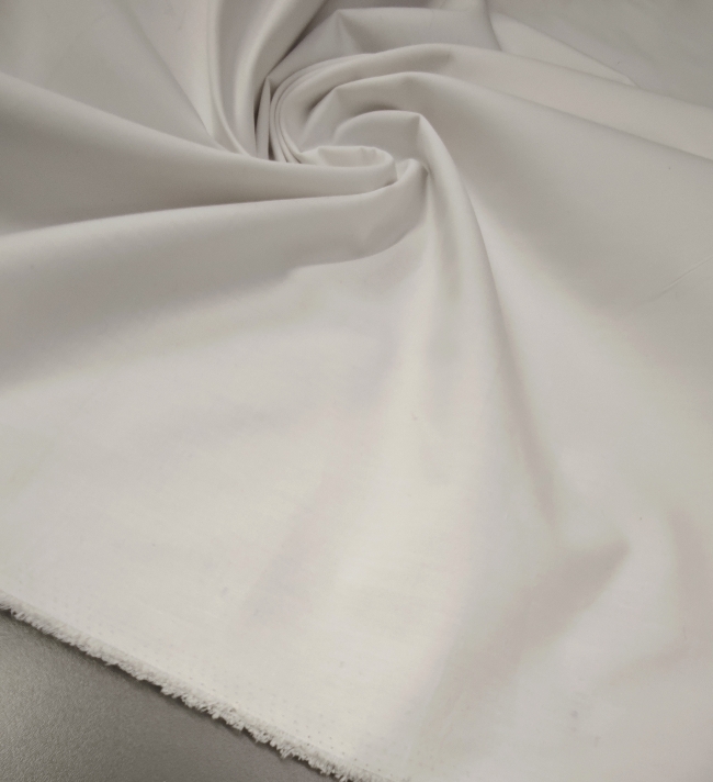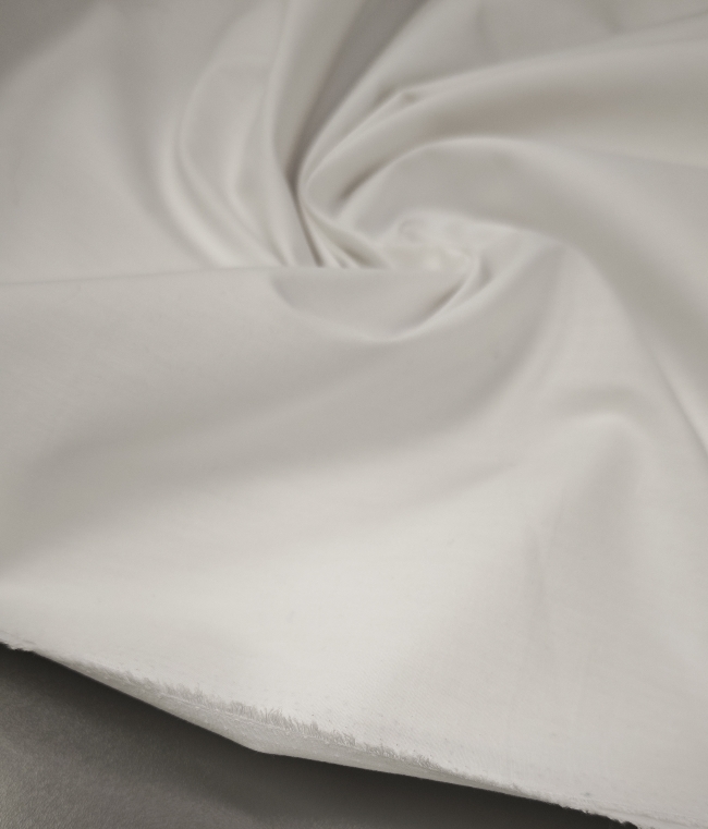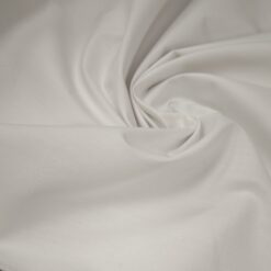 Klassischer Baumwoll-Popeline in reinem Weiß. Fein und dicht gewebt, glatt in der Oberfläche und angenehm fest im Griff. Der Stoff fällt sauber, hält die Form und sorgt für ein stets ordentliches Erscheinungsbild. Besonders geeignet für Hemden, Blusen, Kleider und Röcke mit klaren Linien sowie für zeitlose Schnitte im Alltag und im Business. Auch für hochwertige Kinderbekleidung sehr gut einsetzbar.