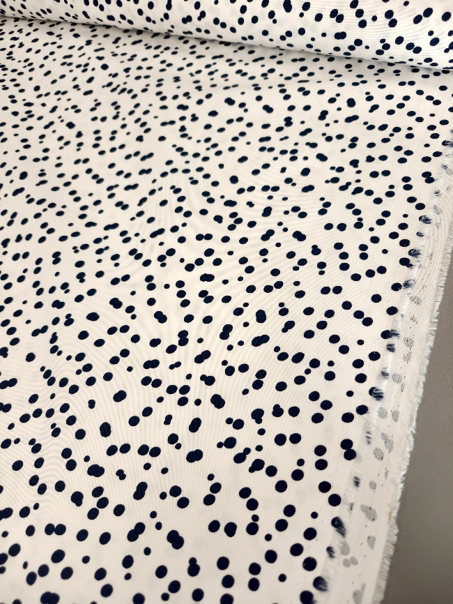 Weißer Baumwollstoff mit blauen Punkten(180g/m2) 1kg/19,90€