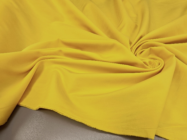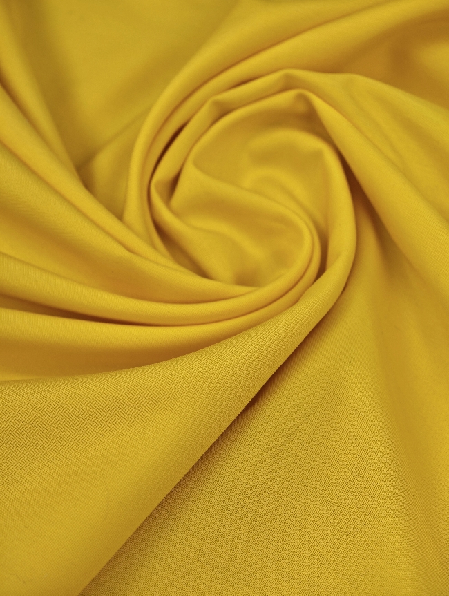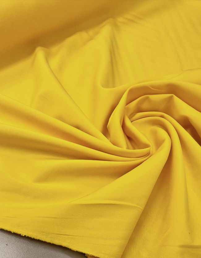 Dieser gelbe Baumwollpopelin überzeugt durch eine feine, gleichmäßige Oberfläche und einen klaren, gepflegten Fall. Das Material wirkt ordentlich, formstabil und angenehm leicht, ohne steif zu sein. Die glatte Struktur sorgt für ein sauberes Erscheinungsbild und ein professionelles Ergebnis beim Nähen.